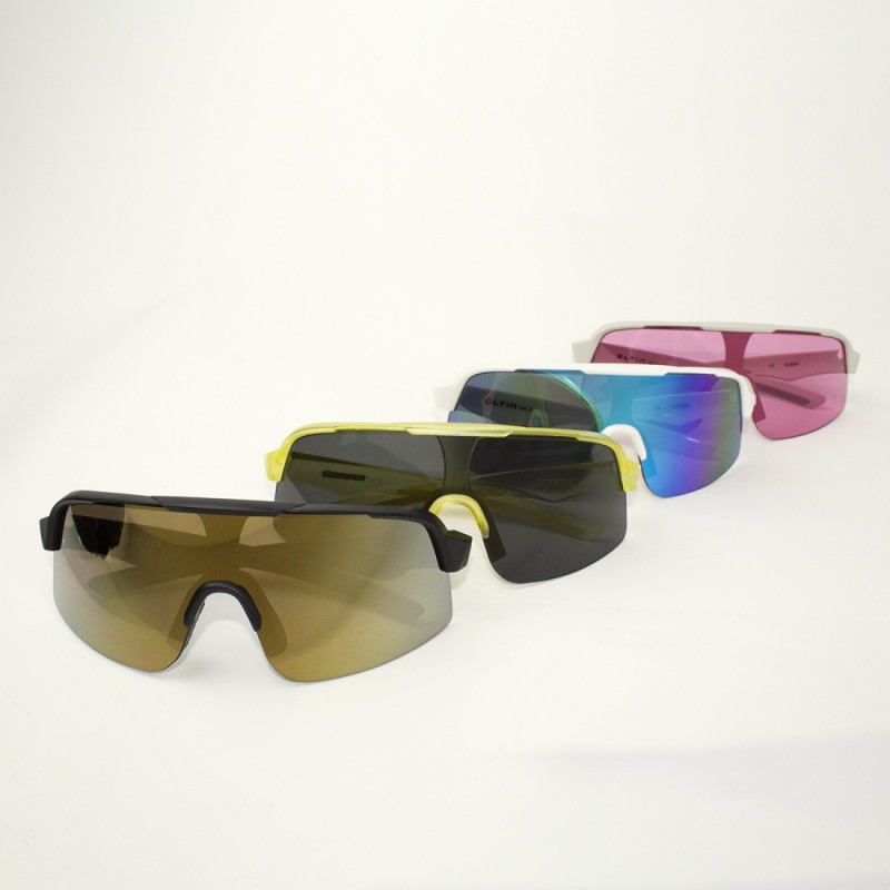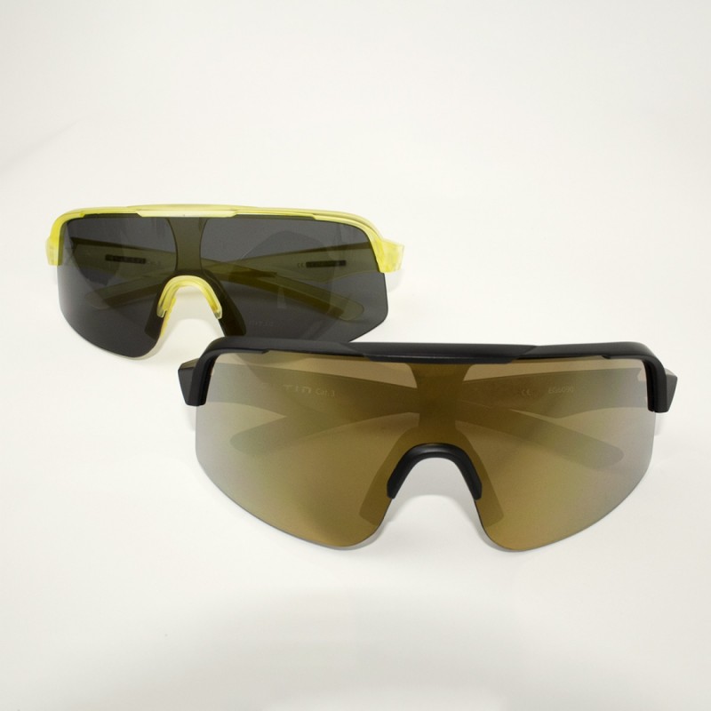 Gafas de lente curvada de grandes dimensiones. Ofrece una visión panorámica y optimizada en cualquier situación y un ajuste natural al rostro que protege frontal y lateralmente del sol y cualquier elemento que nos podamos encontrar sobre la bici.